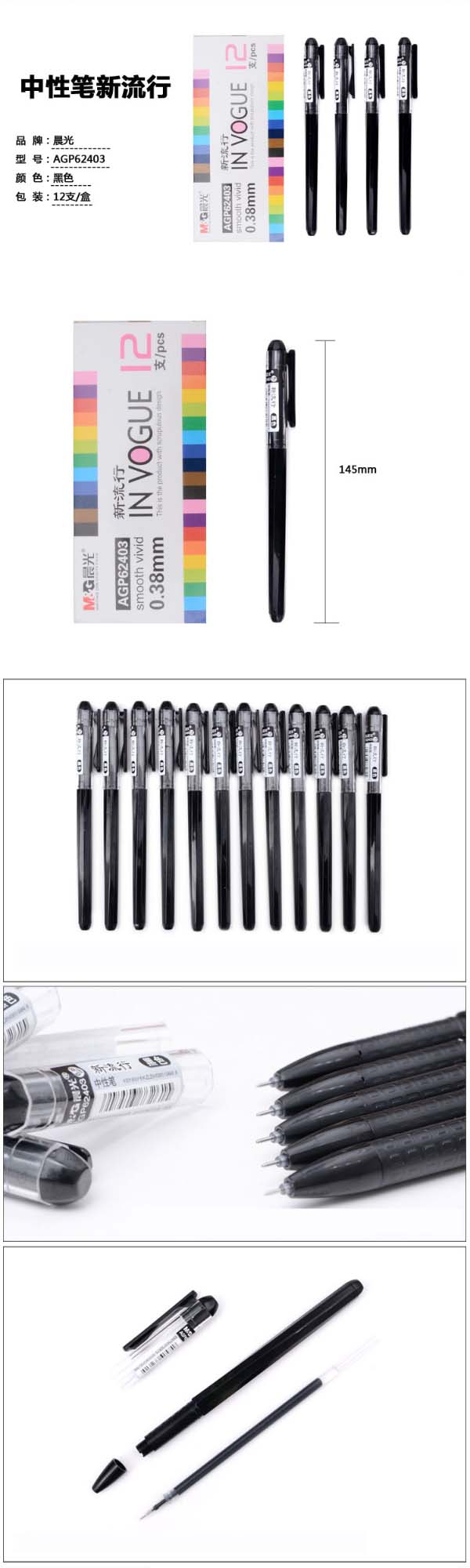 晨光AGP62403中性笔纯蓝色.38mm12支/盒 自营